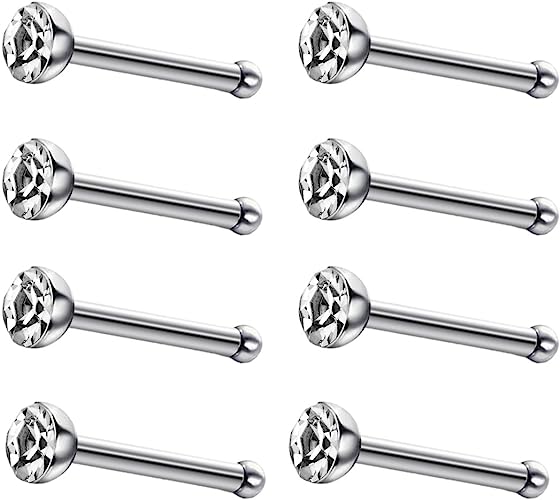 GOOD FOR SENSITIVE SKIN: Made of Hypoallergenic Nickel-free Lead-free Stainless Steel Metal Type, set with Shiny Clear White Crystals nose studs on the Top, Comfortable and Safe for Sensitive Skin