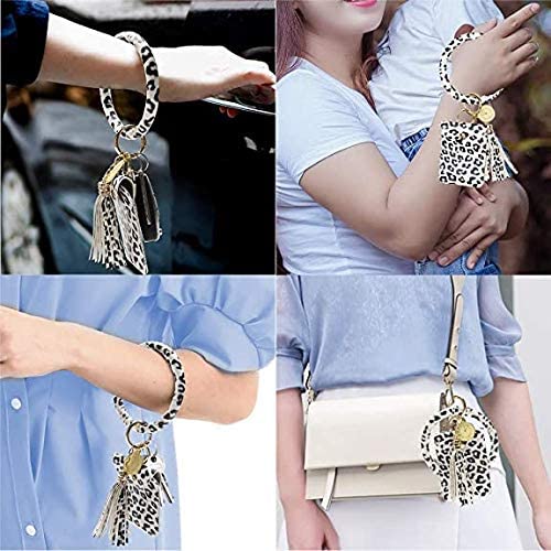 Key Ring Keychain Bracelet Wristlet Bangle Keyring – Large Circle Leather Tassel Bracelet Holder for Women Girl