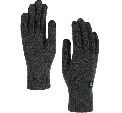 COLD WEATHER GLOVES: Timberland Men’s Magic Gloves featuring breathable knit fabric, elastic ribbed cuff, and a rubber logo. One size fits most.